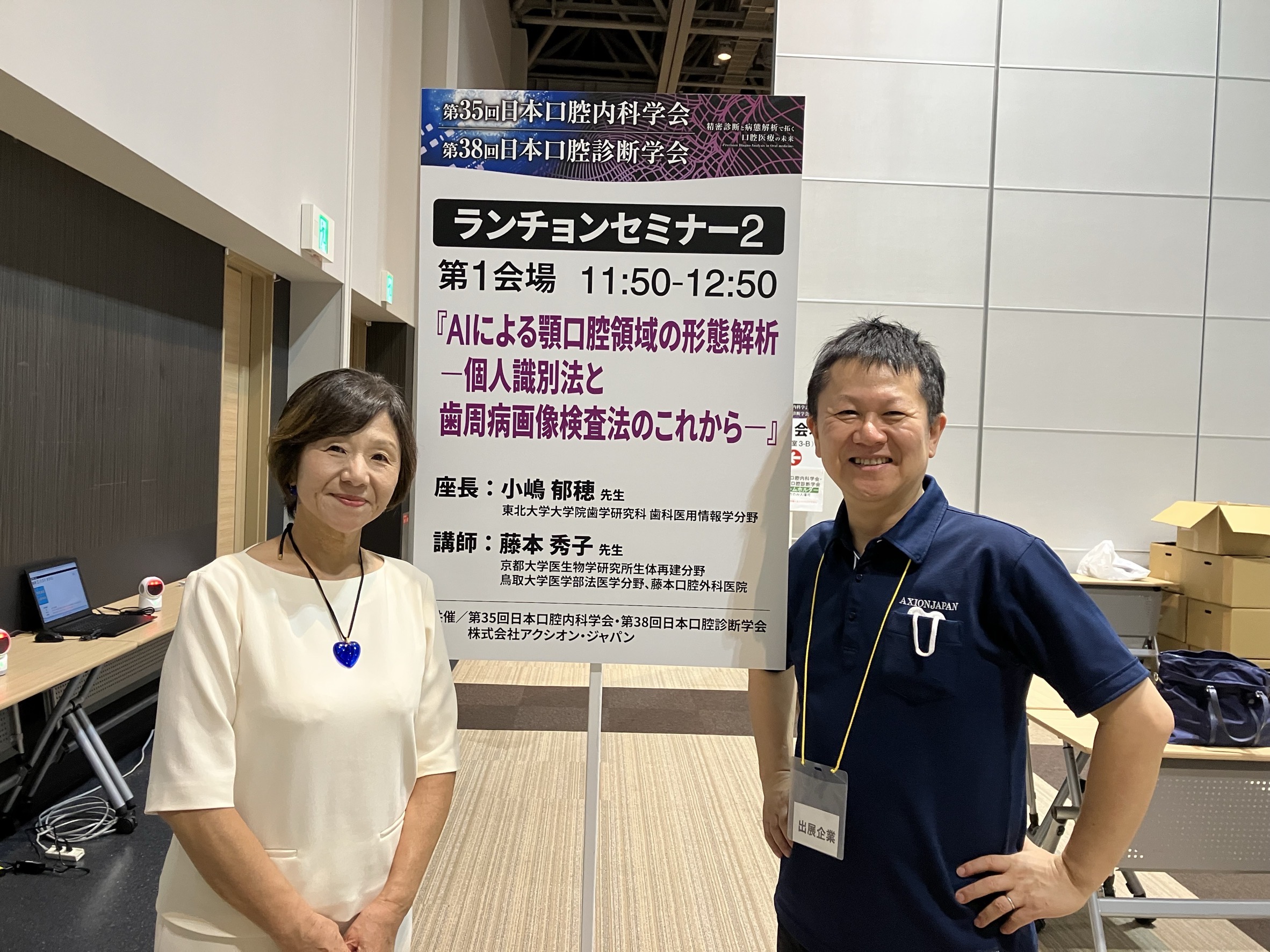 企業出展の他、当社共催で、藤本秀子先生(京都大学医生物学研究所生体再建分野、鳥取大学医学部法医学分野、藤本口腔外科医院)によるセミナー「AIによる顎口腔領域の形態解析 ―個人識別法と歯周病画像検査法のこれから―」が実施されました。